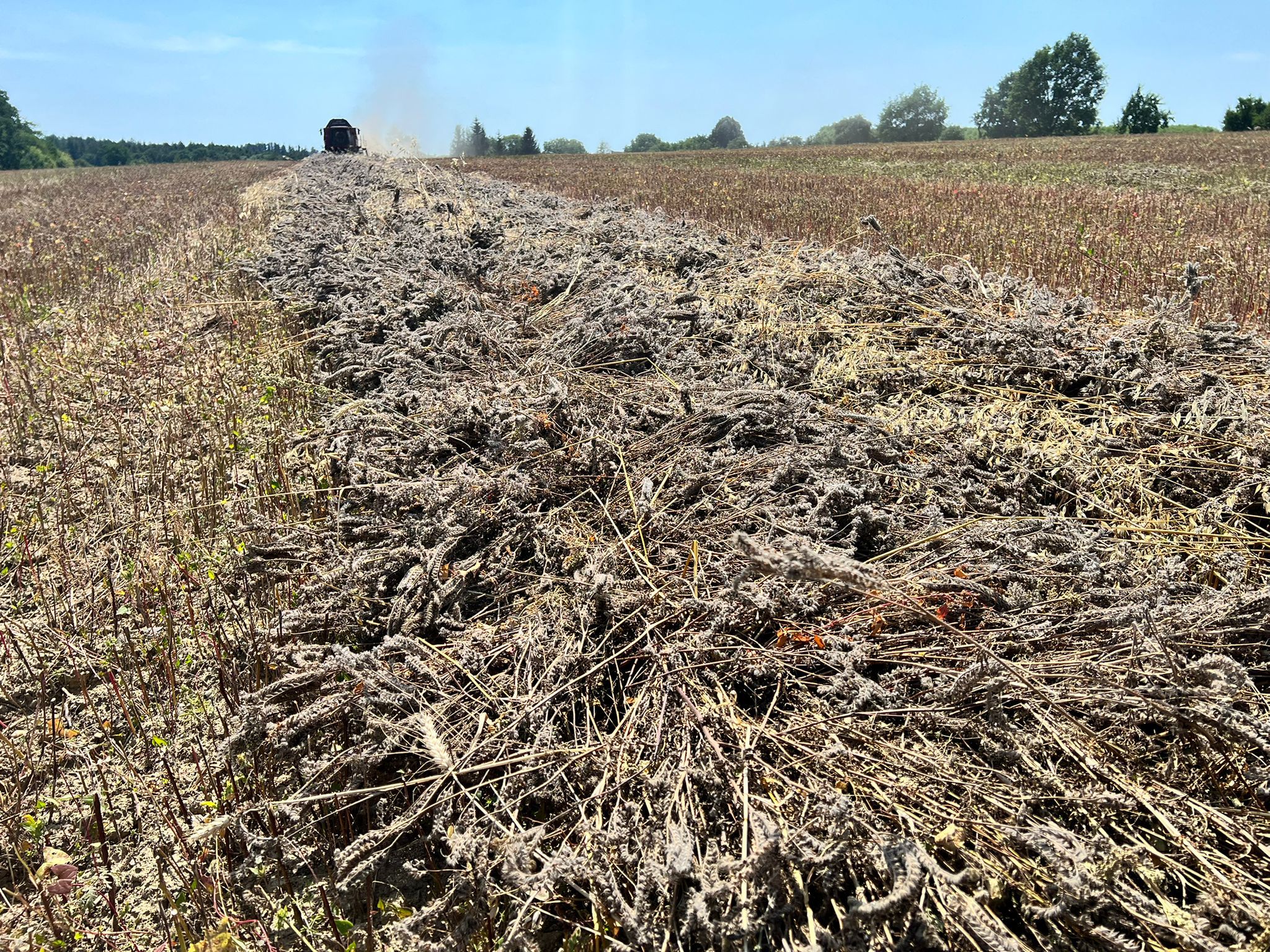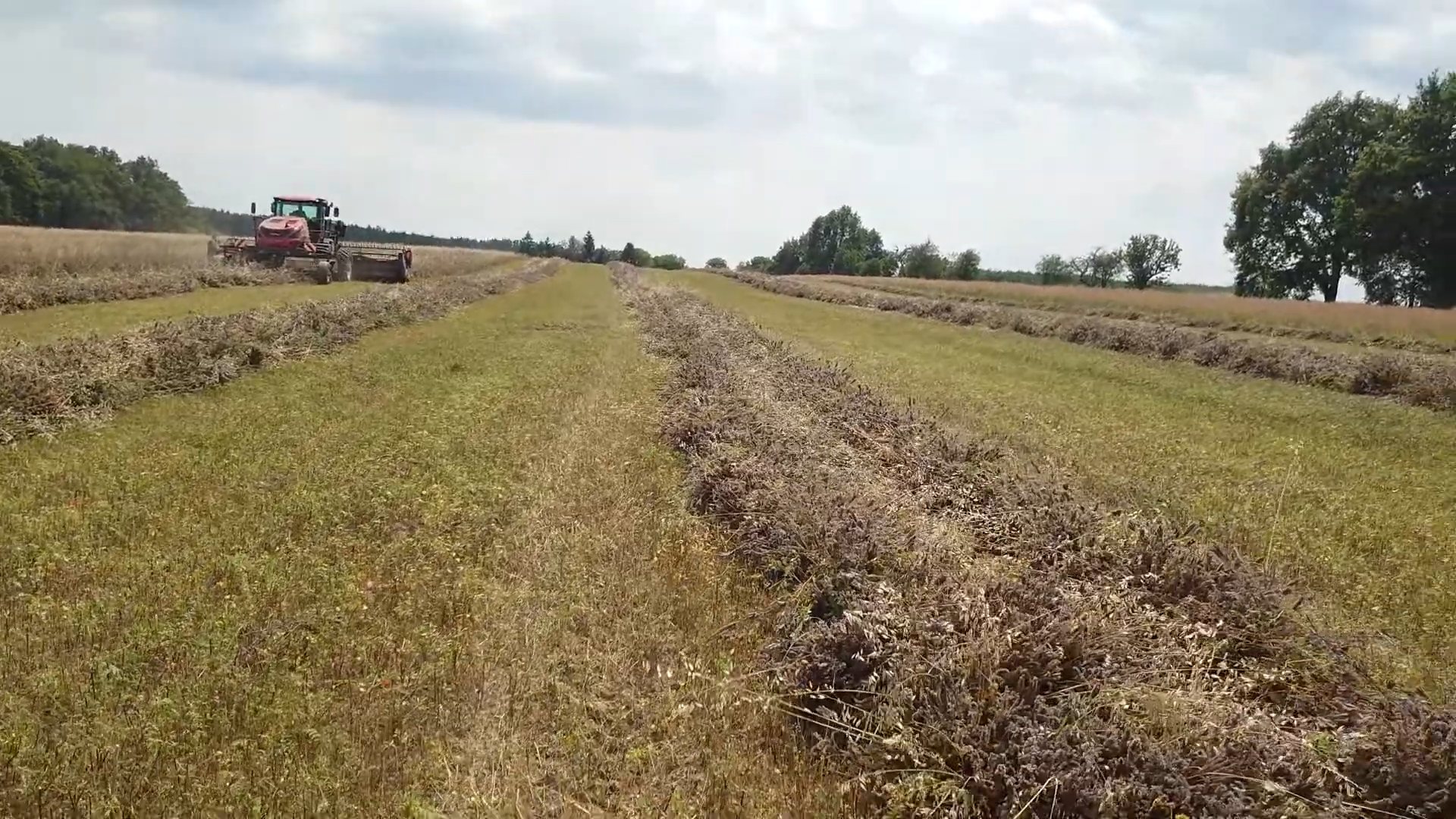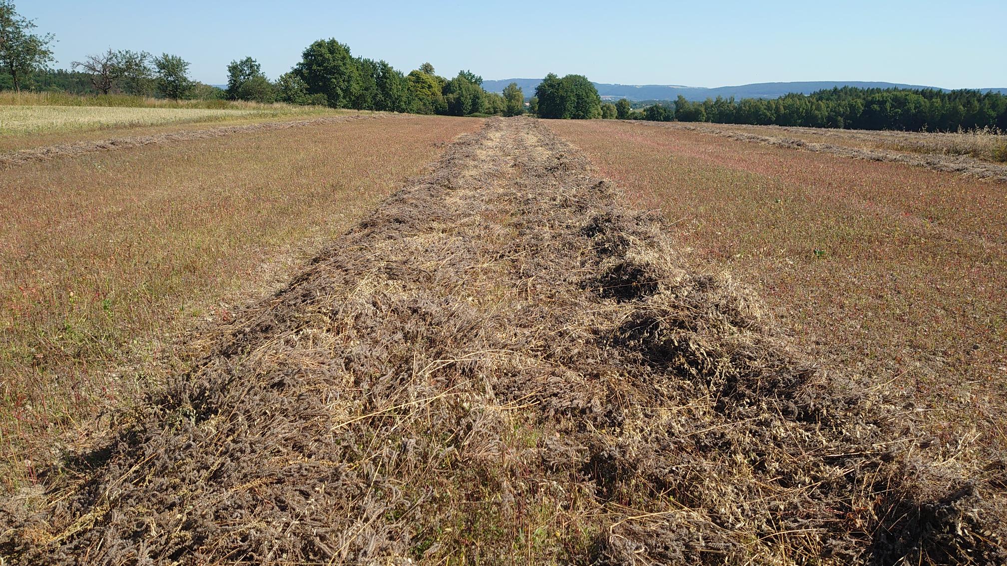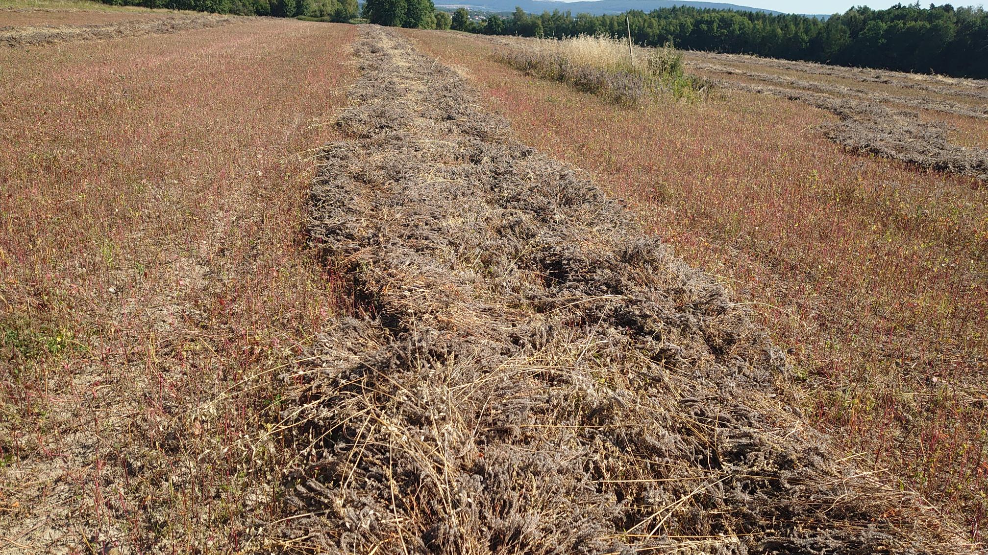 Další fáze – zasychání pokosených rostlin svazenky přímo na poli po dobu 7 dnů...