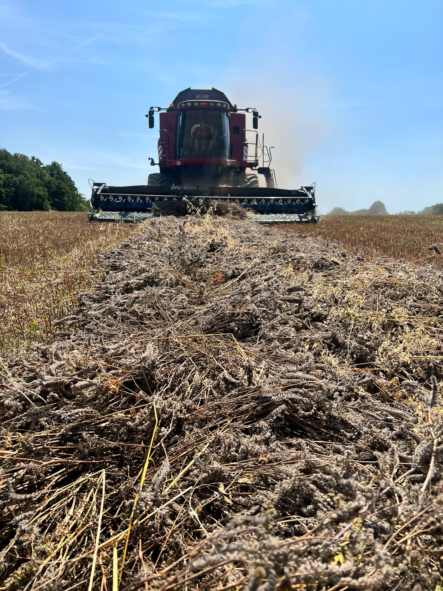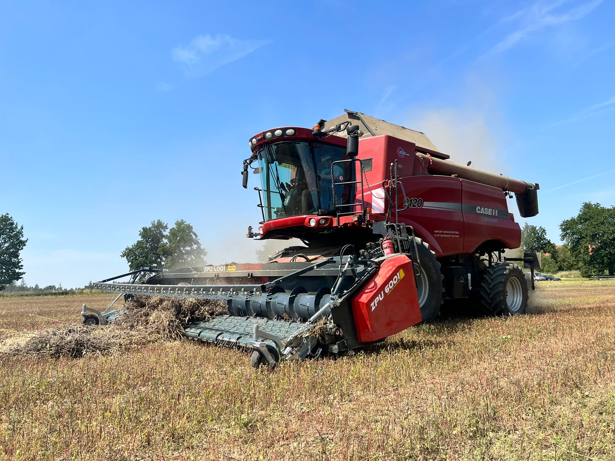 Poslední fáze – sklizeň svazenky pomocí sklízecí mlátičky CASE IH Axial Flow 9120 se sběracím adaptérem...
