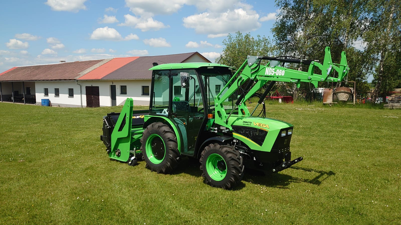 V létě jsme na přání zákazníka dodali malý víceúčelový traktůrek Vega Excellent, který díky kabině zajišťuje komfortní provoz po celý rok i za nepříznivých podmínek. Tyto malotraktory vyrábí v Prostějově Firma Šálek s.r.o. již od roku 1955. Vícefunkční traktor Vega se vyznačuje velkým prostorem pro řidiče, pohodlnými sedačkami a účelovým uspořádáním ovladačů a přístrojového panelu. Kabina je vybavena topením, stupňovou ventilací, předními a zadními pracovními světlomety, sundávacím výstražným majákem a stěračem předního skla. Bezpečnostní prosklená kabina je řešena tak, aby nezhoršovala výhled z místa řidiče. Široké využití malotraktorů s kabinou najde uplatnění ve všech odvětvích, jak v zemědělském provozu, komunální sféře, lesnictví, vinařství, sadech, školkách, dopravě a zvláště tam, kde je kladen důraz na celoroční provoz a také tam, kde je nutná stabilita soupravy a také lepší držení stopy v řádku, především při práci čelních nakladačů, příkopových mulčerů či pro práci v lese. Malotraktory jsou homologovány a schváleny pro provoz na pozemních komunikacích.