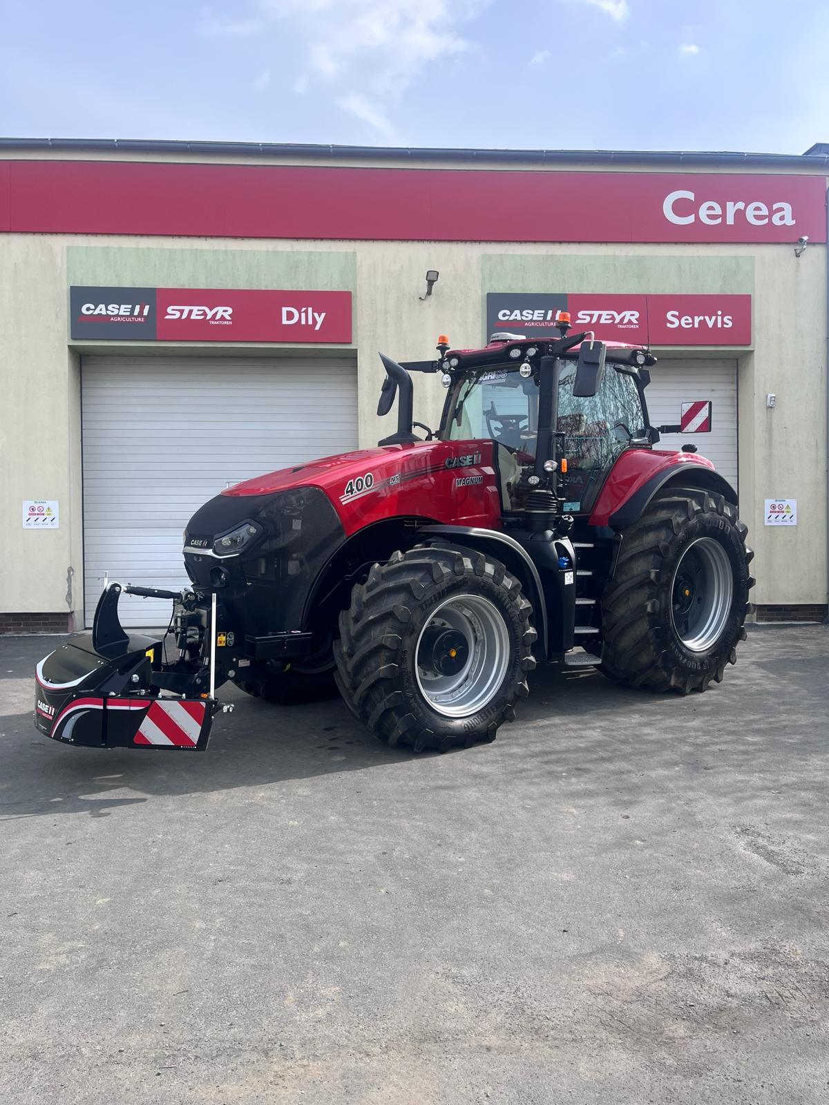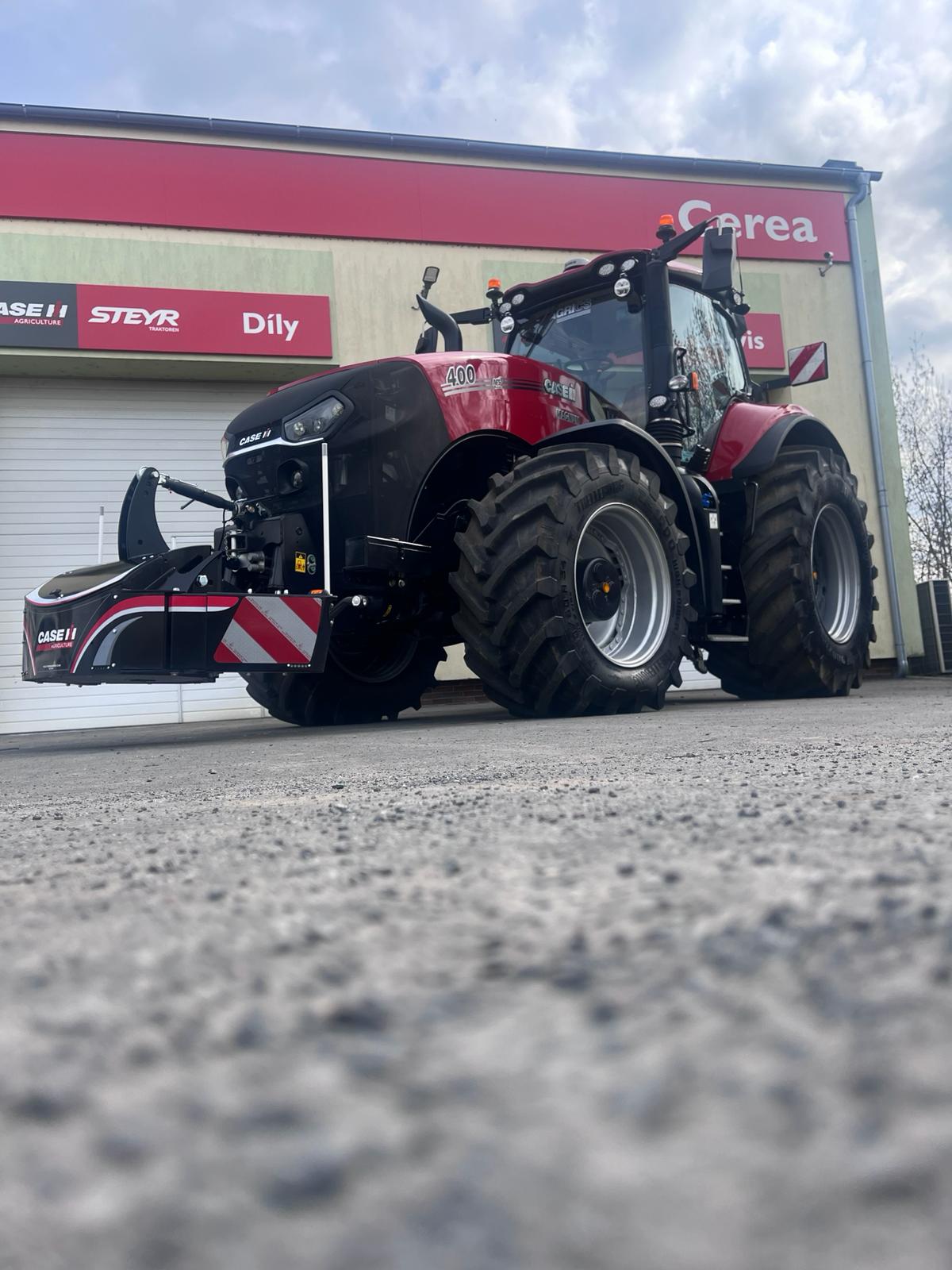 Kolový traktor CASE IH Magnum 400 zamířil do společnosti Zemědělská akciová společnost Mžany, a.s. Nejsilnější model této řady maximálním výkonem 435 hp a převodovkou Power Drive 50 km/h se ihned zapojil do práce. Traktor má všechny převodové stupně řazené pod zatížením, 21 stupňů vpřed, 5 vzad. Full výbava tohoto červeného obra je: 5 zadních elektrických okruhů, Twin Flow systém - dvě axiální hydraulická čerpadla s průtokem 282 l/min, přední tříbodový závěs s managementem + 2 el. středové okruhy - jeden okruh vyveden k přednímu TBZ, LUXURY COMFORT TM paket (hydraulické odpružení kabiny Semi-active s možností nastavení, luxusní kožené sedadlo řidiče Active Seat s vyhříváním a provětráváním, kožené sedadlo spolujezdce, kožený volant, prošívaný koberec, el. vysouvatelná zrcátka), pneu přední IF650/60 R34, zadní IF900/60 R42 Trelleborg. Závaží zadních kol 2500 kg. Traktor jsme osadili krásným funkčním předním závažím TractorBumper o váze 1100 kg.