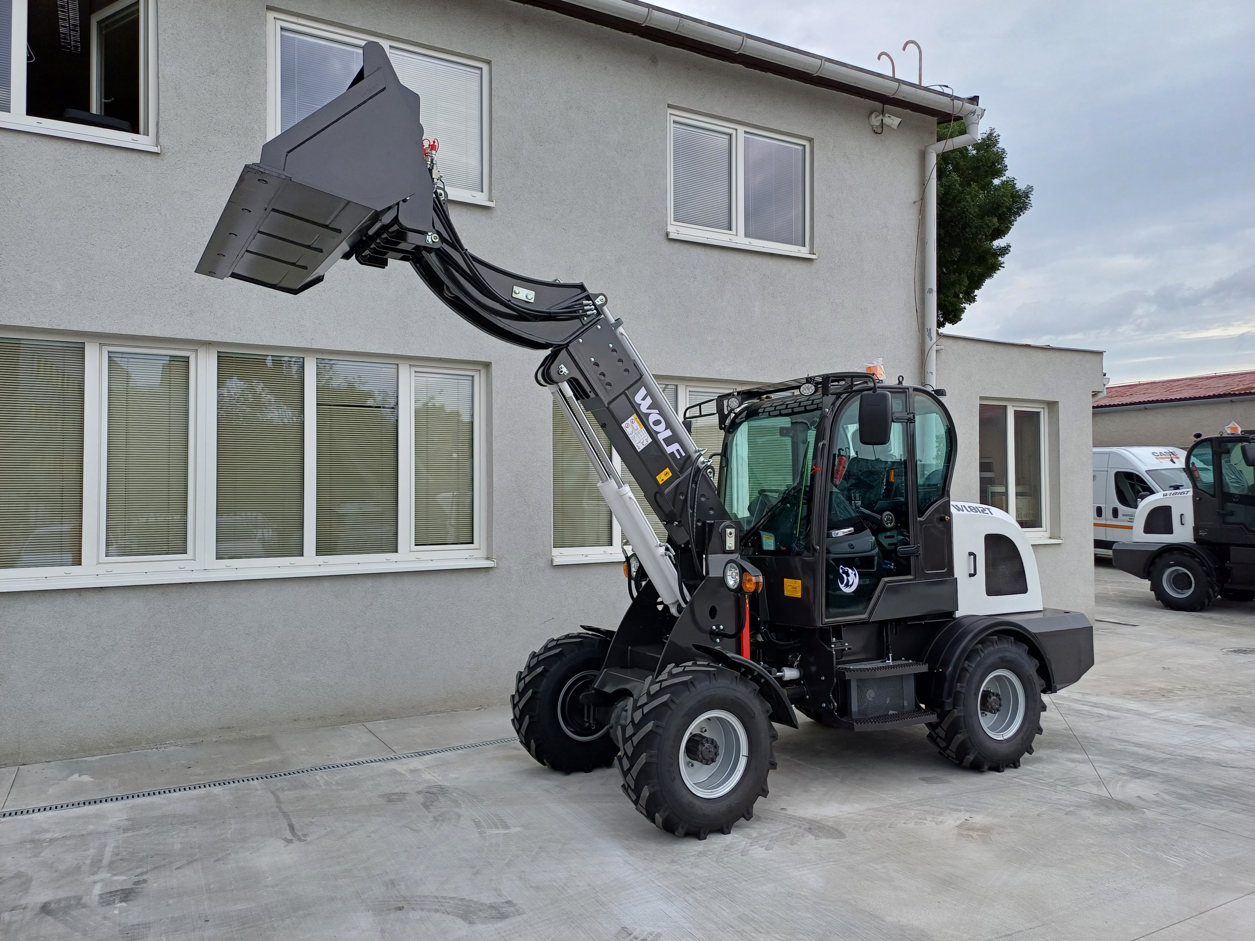 Základ sortimentu kloubových nakladačů WOLF představuje nejmenší model WL812T. Lze na něj namontovat lžíci v objemových rozmezích 0.6 až 0.9 m³, nejvyšší nosnost činí 1200 kg. Maximální výklopná výška činí téměř 3.4 metru. Stroj pohání 4válcový dieselový motor s výkonem 36.8 kW. Nakladač je dlouhý cca 5.5 metru, úhel zalomení v kloubu má hodnotu 41.5 stupně. Tento model tak ocení ti, co potřebují stroj schopný pracovat ve velmi stísněných prostorách menších skladišť, stavebních dvorů apod. |
