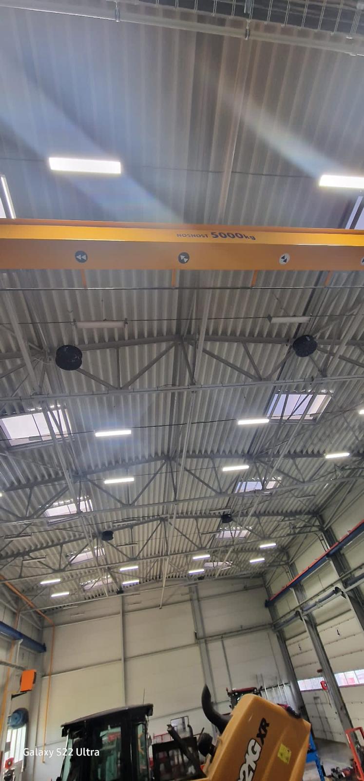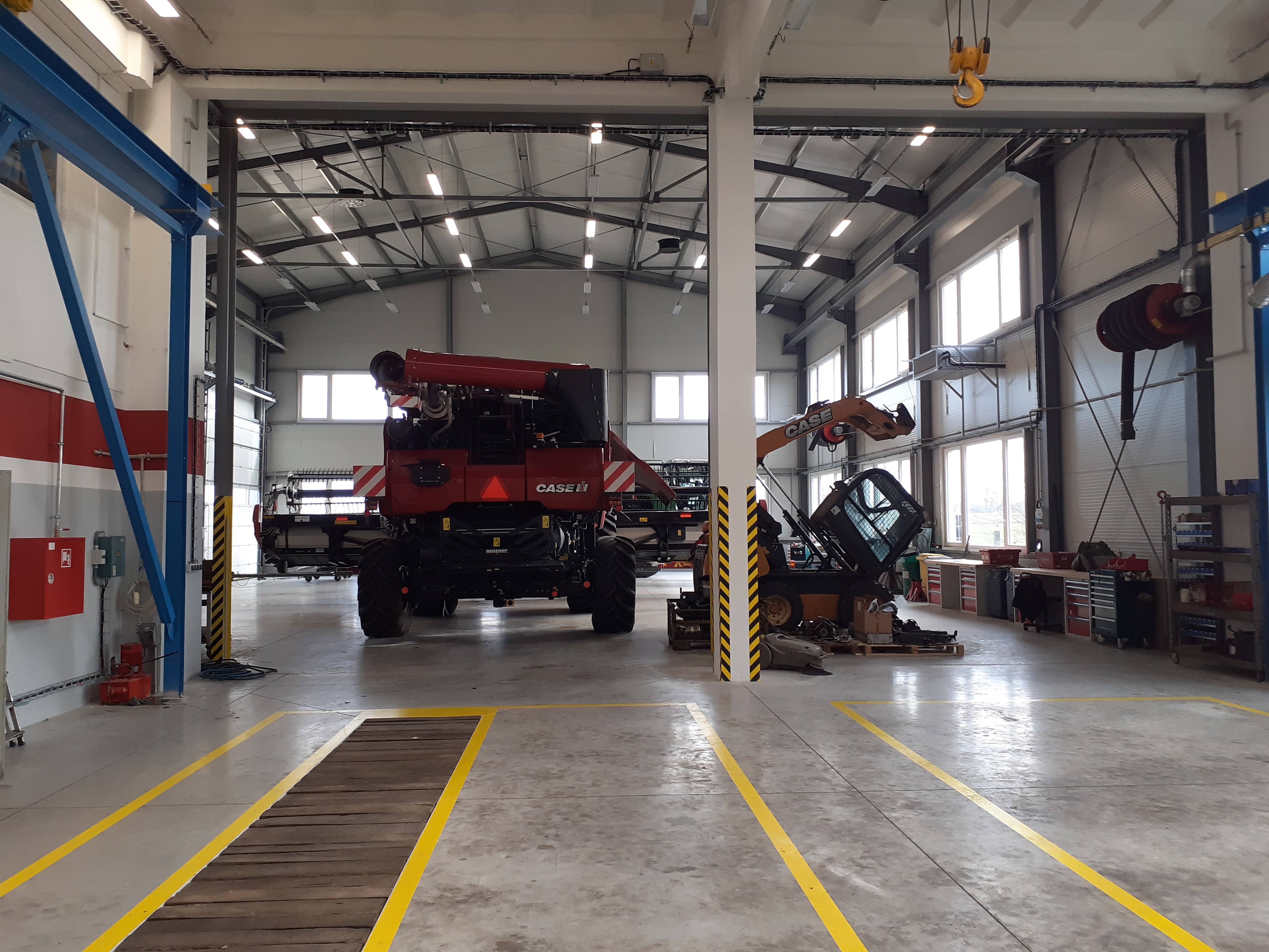 Jelikož hala je vybavena novým portálovým jeřábem o nosnosti 8 tun, je možné bez omezení servisovat velké stroje, jakými jsou například axiální mlátička, samochodný postřikovač či velké pásové traktory.
