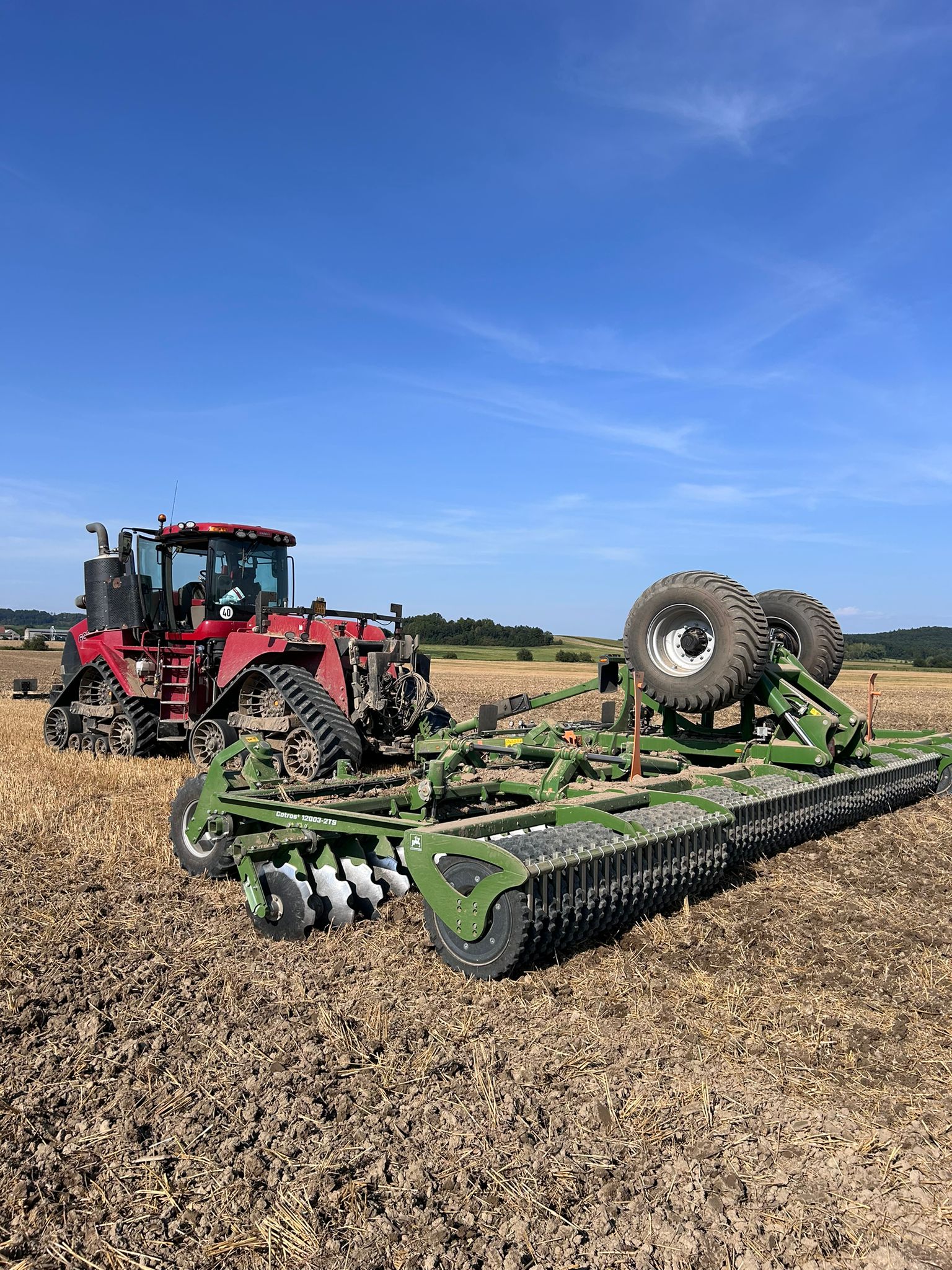 Na přání zákazníka jsme na Pardubicku předvedli diskový podmítač Amazone Catros 12003-TS přímo na poli. V zápřahu za čtyřpásovým traktorem CASE IH Quadtrac 620 byl Catros skvělým parťákem a společně tak odvedly velmi dobrou práci. Diskové podmítače Catros jsou ideální volbou pro intenzivní promíchání posklizňových zbytků s půdou. Díky nízké náročnosti na výkon traktoru v rámci pracovního záběru od 2,5 do 12 m lze dosahovat velmi vysoké pojezdové rychlosti, a tudíž i velkého plošného výkonu při současně velmi ekonomickém provozu a neuvěřitelně nízké spotřebě paliva. Uložení disků je bezúdržbové, mazaní vystačí na celou dobu životnosti. Disky jsou jednotlivě upevněny na rámu prostřednictvím elastických silentbloků, což umožňuje samostatný pohyb při kopírování terénu a vyhýbání se překážkám. Pokud máte zájem vidět Catros v akci nebo vyzkoušet si je přímo na vaší farmě, kontaktujte naše prodejce a domluvte si termín.