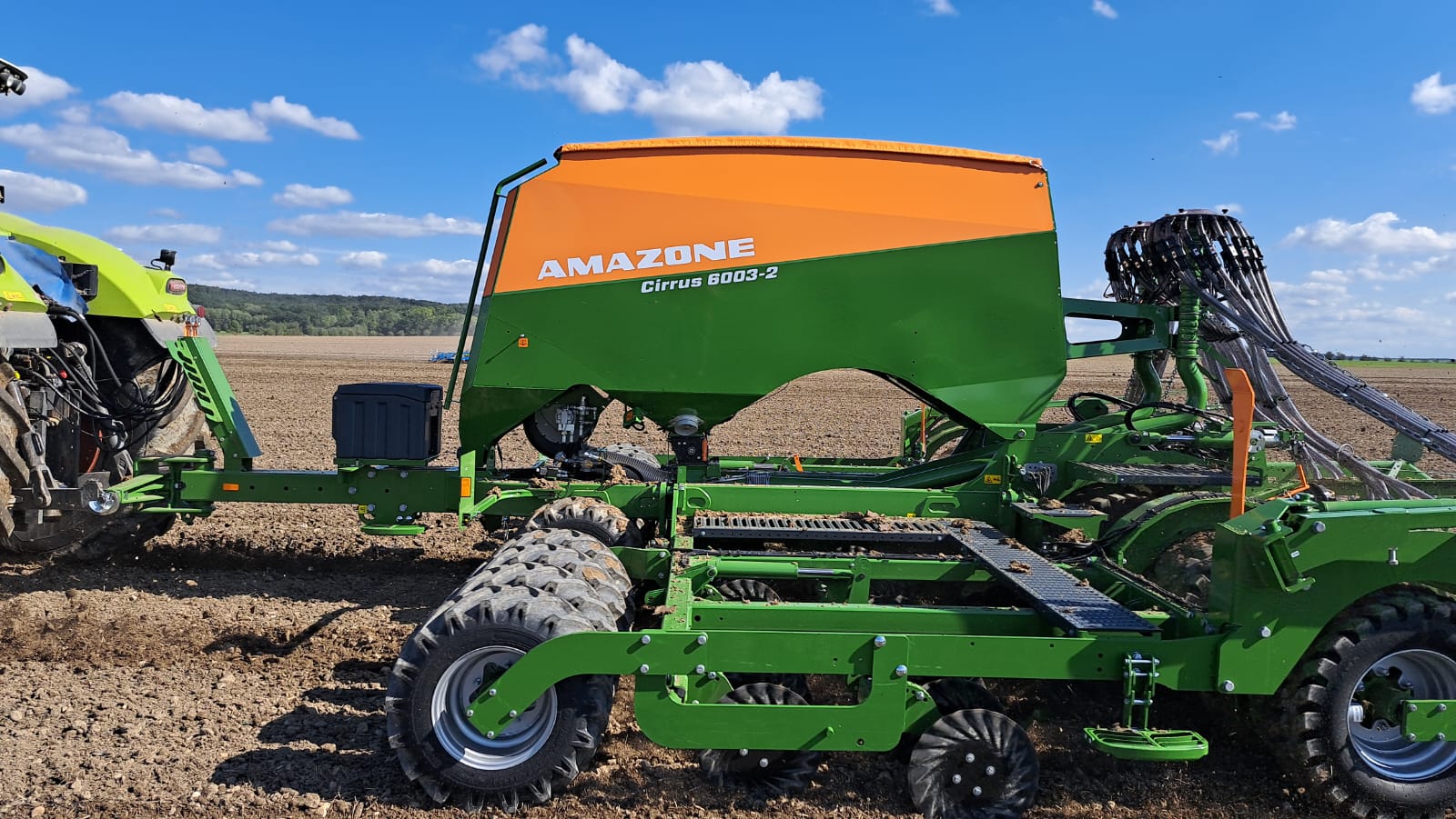 Secí stroj Amazone Cirrus se záběrem 6 m a objemem zásobníku 3 600l je osazen 2 diskovými botkami se vzdálenostmi řádků 16,6 cm. Je vybaven terminálem Amatron 4 a 36 secími botkami TwinTec+ a zajišťuje kontrolu každé secí botky. Pracovní rychlost secího stroje je 8-16 km/h a je určen pro traktory s minimálním výkonem od 220 koní. Nechybí ani čelní pneumatikový pěch T-pack. Pro intuitivní kontrolu a ovládání je u secího stroje Cirrus využíván systém ISOBUS bez terminálu. Díky novým zvlněným diskům Minimum TillDisc mají secí stroje Cirrus speciální variantu pro diskovou sekci na přípravu půdy. Při práci se zvlněnými disky dochází k značně menším pohybům půdy než v případě konvenčních disků, což je vhodné zejména v problematických oblastech s pleveli a se zvýšenou rezistencí proti chemickým přípravkům. Zde mohou být tyto zvlněné disky efektivním řešením při minimalizačním způsobu setí.