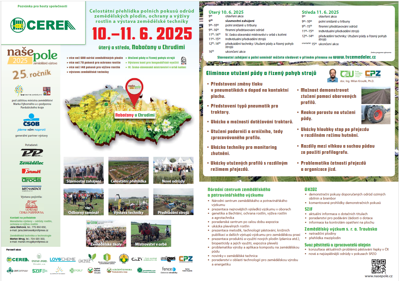 s radostí vám oznamujeme, že se Cerea, a.s. zúčastní tradiční zemědělské výstavy Naše Pole 2025. Přijďte se s námi potkat v Nabočanech u Chrudimi ve dnech 10. a 11. června 2025. Těšit se můžete na celostátní přehlídku odrůd, ochrany a výživy rostlin, a samozřejmě i na nejnovější zemědělskou techniku. U našeho stánku bude pro všechny partnery a zákazníky připraveno občerstvení. Přijďte prozkoumat nejnovější trendy a technologie, které formují moderní zemědělství. Těšíme se na vaši návštěvu a příjemné setkání!