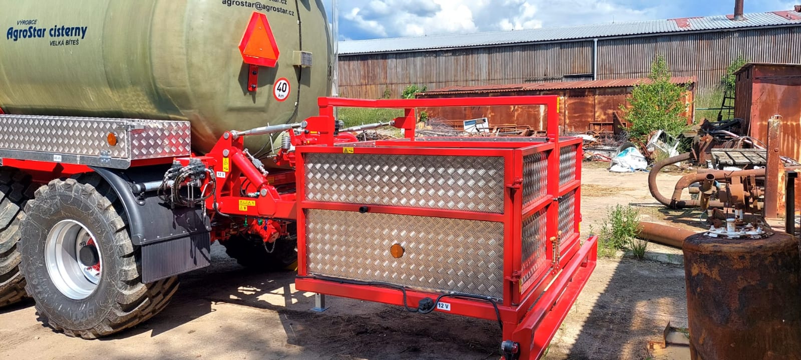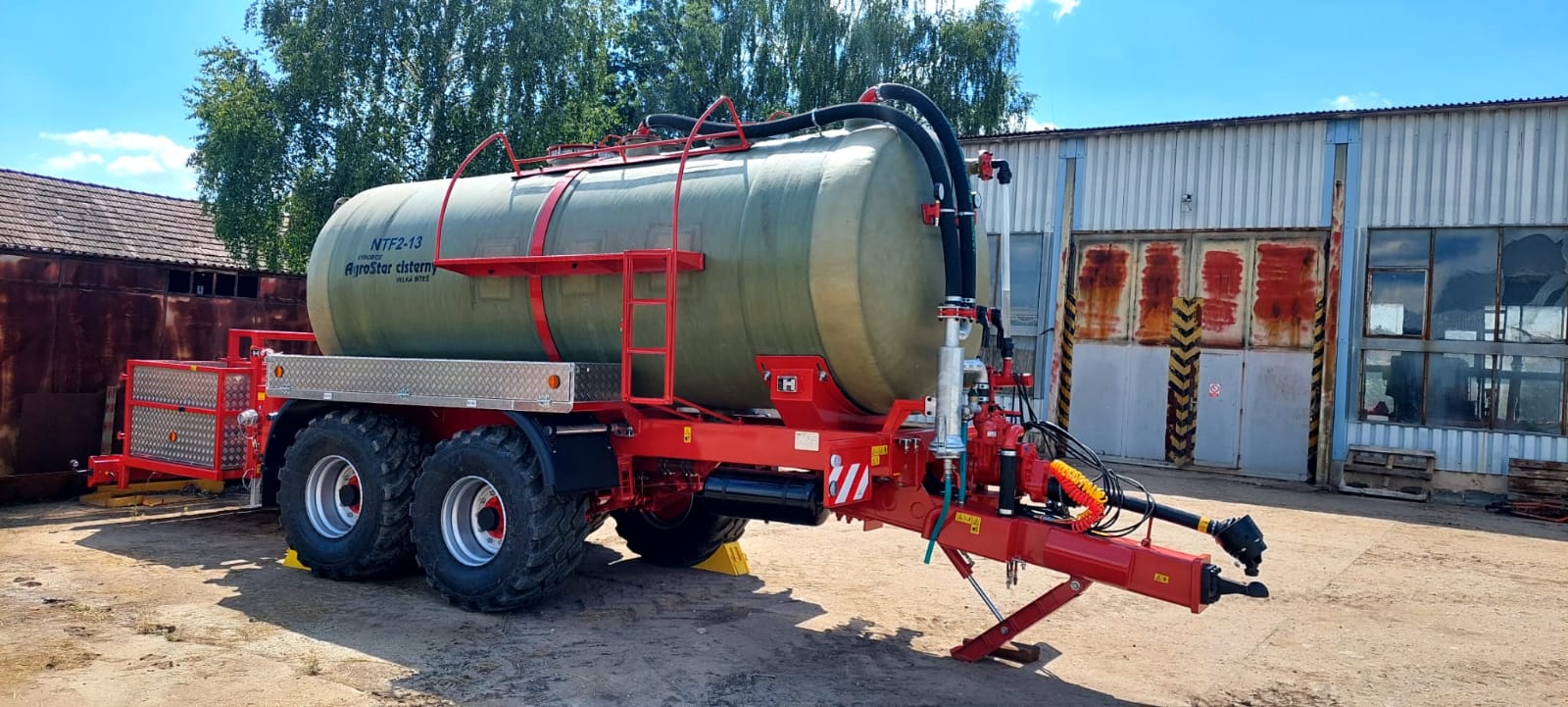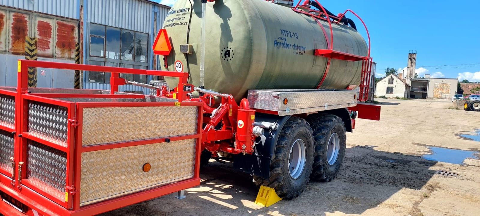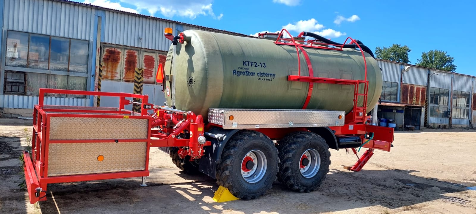 Dvoukomorová cisterna AGROSTAR NTF 2-13 m3 byla předána společnosti ZAS Býšť. Cisterna s dělenou nádrží 4000l vpředu a 8000l vzadu s horním víkem a možností zadního i bočního plnění. Vývěva o výkonu 9000l/min., komplet nerezová výbava na převoz DAM, dvojitá odpružená i řiditelná náprava s pneu 560/60 R22,5, zadní nesená plošina na převoz až 2 palet se 4-bodovým hydraulickým vzadu ovládaným závěsem. Cisterna je v bohaté výbavě přímo postavená na přání našeho náročného zákazníka, který ví, co přesně chce...