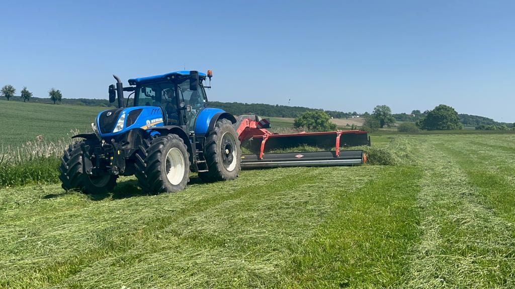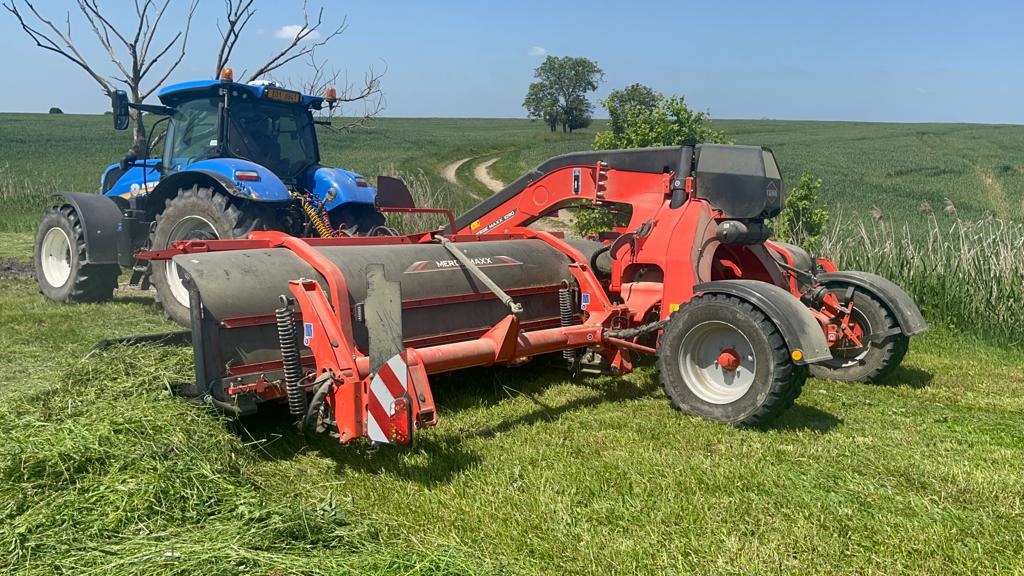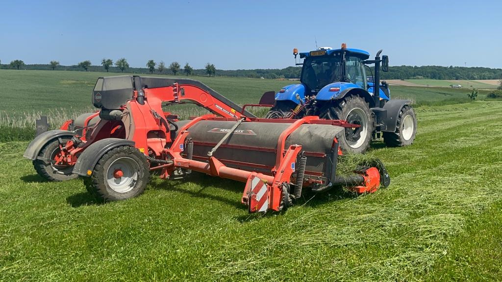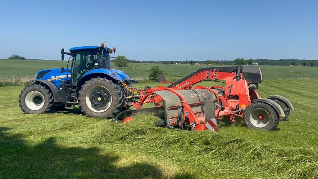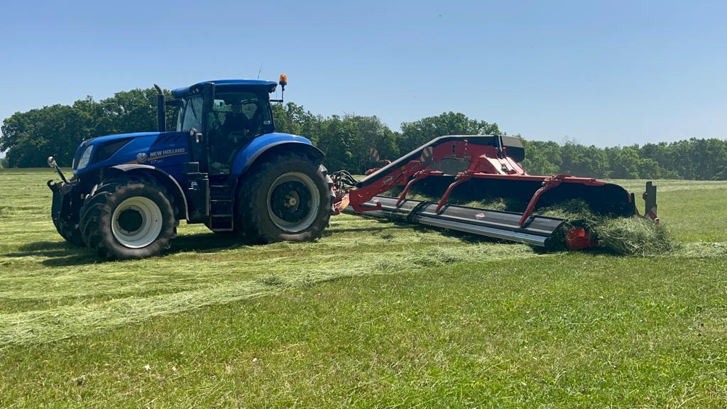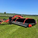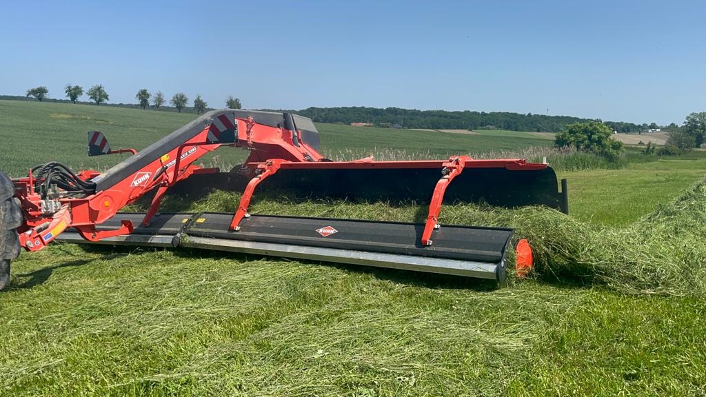 K našemu stálému VIP zákazníkovi do Býště putoval pásový shrnovač KUHN MERGE MAXX 1090, který se ihned zapojil do práce a už má za sebou sklizeň senáže. ZAS Býšť nahradila stávající Merge Max 950 tímto novým dvoupásovým provedením. Vzhledem k velkému množství sklízených pícnin a požadavku po kvalitní hmotě bez nečistot byl pasový shrnovač již před lety jasnou volbou. Přínosem je i rovnoměrnější řádek a tím plynulejší chod řezačky, která dosahuje většího denního výkonu s menší spotřebou. Tento shrnovač s pracovním záběrem 10,2 m včetně řádku má 2 hydraulicky hnané pásy a oba sběrače mají 2 výškově nastavitelné plazy. Stroj o hmotnosti 5120 kg s flotačními 500 mm koly zvládá shrnovat píci jak do středu, tak na kraje.