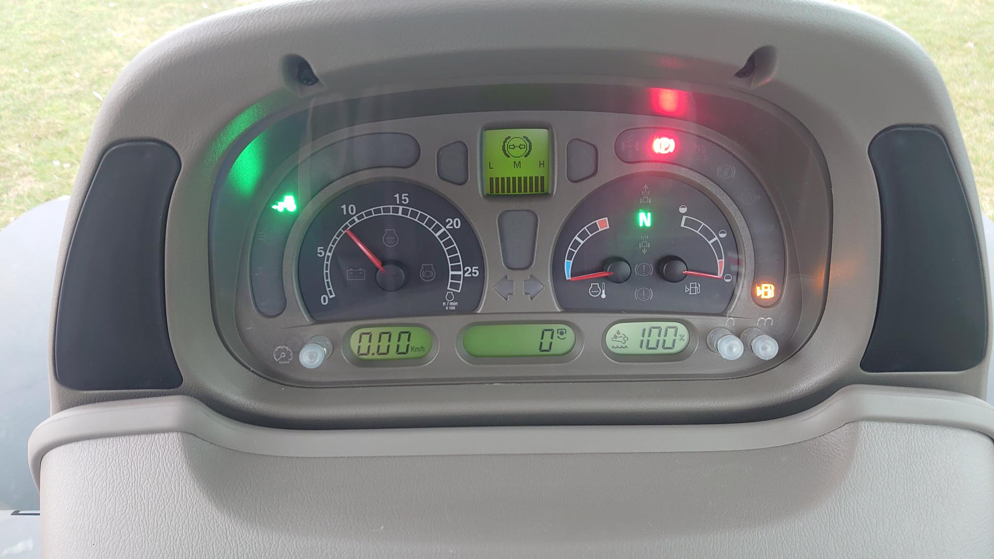 Komfortní čtyř sloupková b s topením a filtrací nasávaného vzduchu, hlučnost 69 dB (A), tónovaná skla kabiny, sluneční clona předního okna, otevíratelné střešní okno pro čelní nakladač, nastavení tuhosti pružení kabiny v 5 krocích.