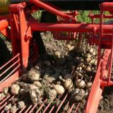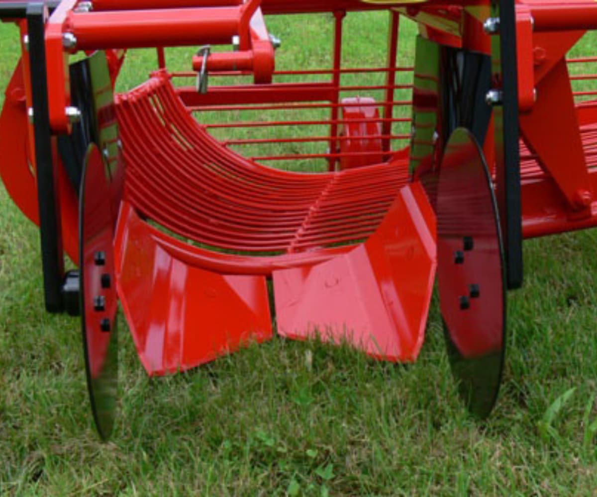 Závěsný vyorávač brambor Tehnos IK-1D má dva disky, které odřezávají zbytečnou bramborovou nať, hlava pluhu podorává hrůbek s brambory a poté je nasměruje na prosévací rošty. Na dvou, proti sobě kmitajících prosévacích roštech, jejichž rychlost lze nastavit, se proseje půda a čisté brambory se odkládají do úzké řady na boku stroje. Tento způsob odkládání je velmi šetrný a nepoškozuje hlízy. Vyorávač brambor Tehnos máme ihned k dodání. Zde můžete zhlédnout video, jak tento stroj pracuje přímo na poli.