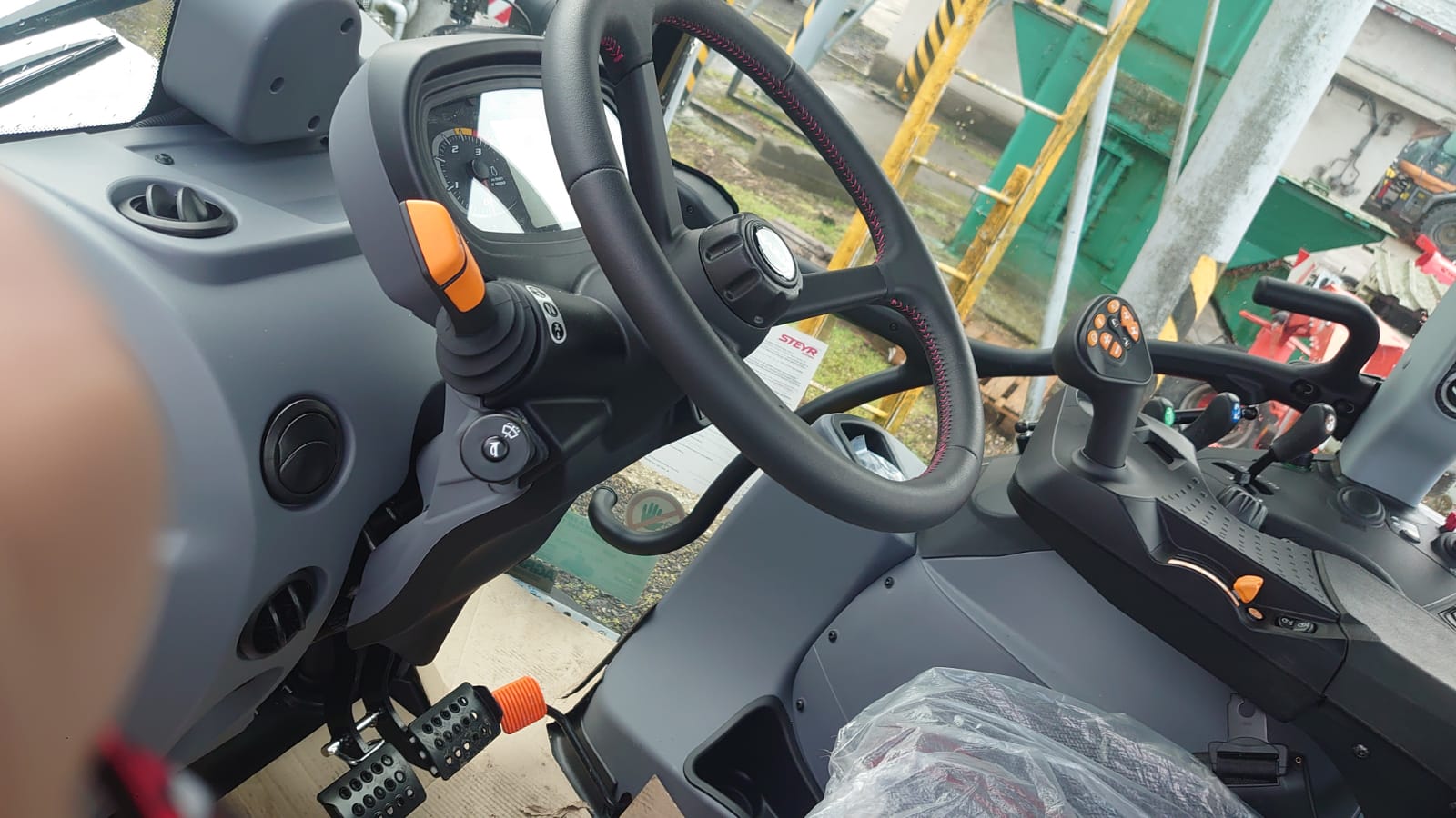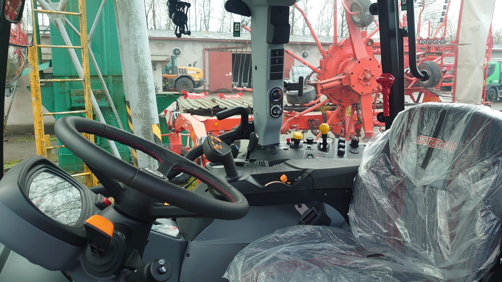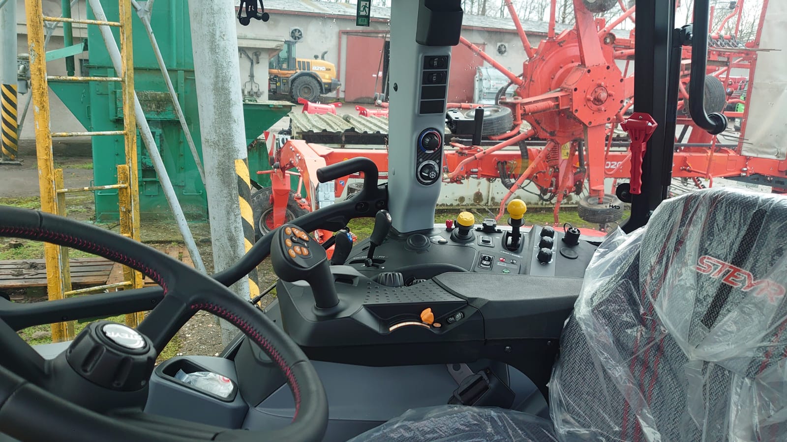 Komfortní kabina s klimatizací, topením a filtrací nasávaného vzduchu, velké otevíratelné střešní okno pro čelní nakladač, nízkofrekvenční vzduchem odpružené sedadlo řidiče v provedení „Premium“ s vyhříváním a hlavovou opěrkou s logem STEYR, pohodlná sedačka spolujezdce s bezpečnostním pásem, nastavitelný sloupek řízení ve dvou směrech s digitální přístrojovou deskou (analogové/digitální ukazatele), kožený volant se tkaným kobercem STEYR, multifunkční loketní opěrka s Multicontrollerem (ovládání spojky, násobiče, reverzace a zvedání ramen), 2 zásuvky na 12 V, 2x USB a další 8 A, 25 A a 40 A, rádio s Bluetooth s reproduktory, 2 teleskopická vnější zpětná zrcátka a jednou vnitřní zrcátko, 6 přední (kapota + kabina) + 4 zadní halogenová pracovní světla ve střeše kabiny + alternativní potkávací světlomety, přední a zadní stěrač s ostřikovačem, sluneční clona na střešní a čelní sklo, otevíratelná boční a zadní okna, držák mobilního telefonu RAM, držák registrační značky ve střeše, elektronický odpojovač akumulátoru, LED maják na levé straně, schránka na nářadí.