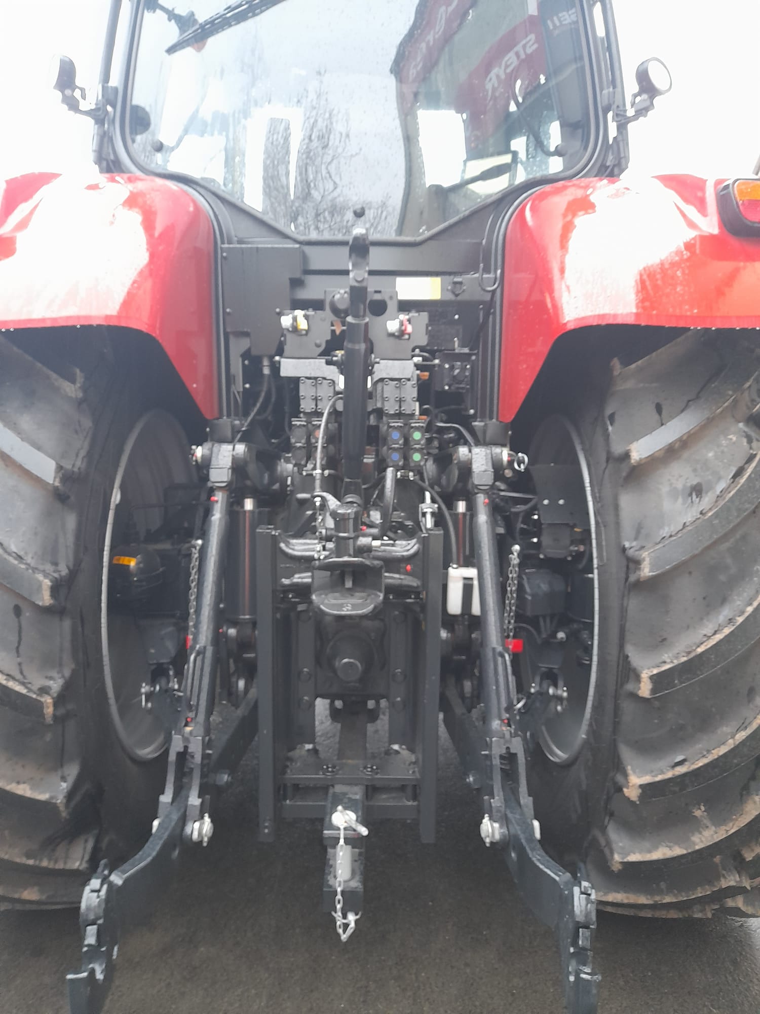Elektronická regulace tříbodové závěsu ( EDC) včetně regulace prokluzu kol (radar), max. zvedací kapacita závěsu 10460 kg – zvedací písty o průměru 110mm, tříbodový rychlozávěs Kat.II/III, auto stabilizátory závěsu, axiální Load Sensing čerpadlo s výkonem 170 l/min, max. tlak 215 bar, 4 elektronicky ovládané okruhy hydrauliky prostřednictvím loketní opěrky Multicontroller a joysticku, nastavení průtoku a časování hydraulických okruhů (max. průtok okruhů 140 l/min), možnost odebrat až 51 l oleje, ovládání zadního TBZ a jednoho okruhu na zadních blatnících.