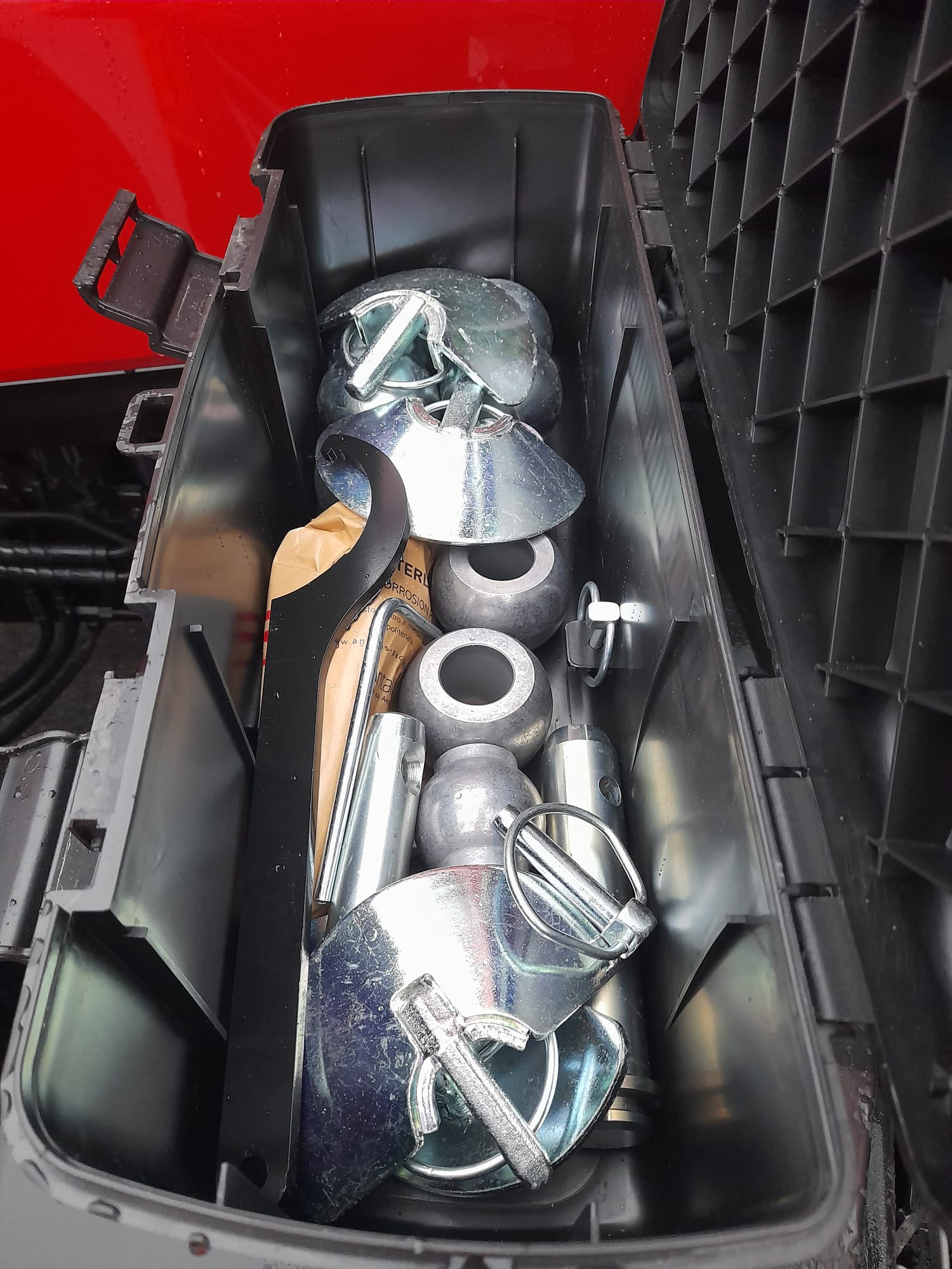Nádrž na vodu pro mytí rukou vedle schůdků do kabiny (objem 8l) |