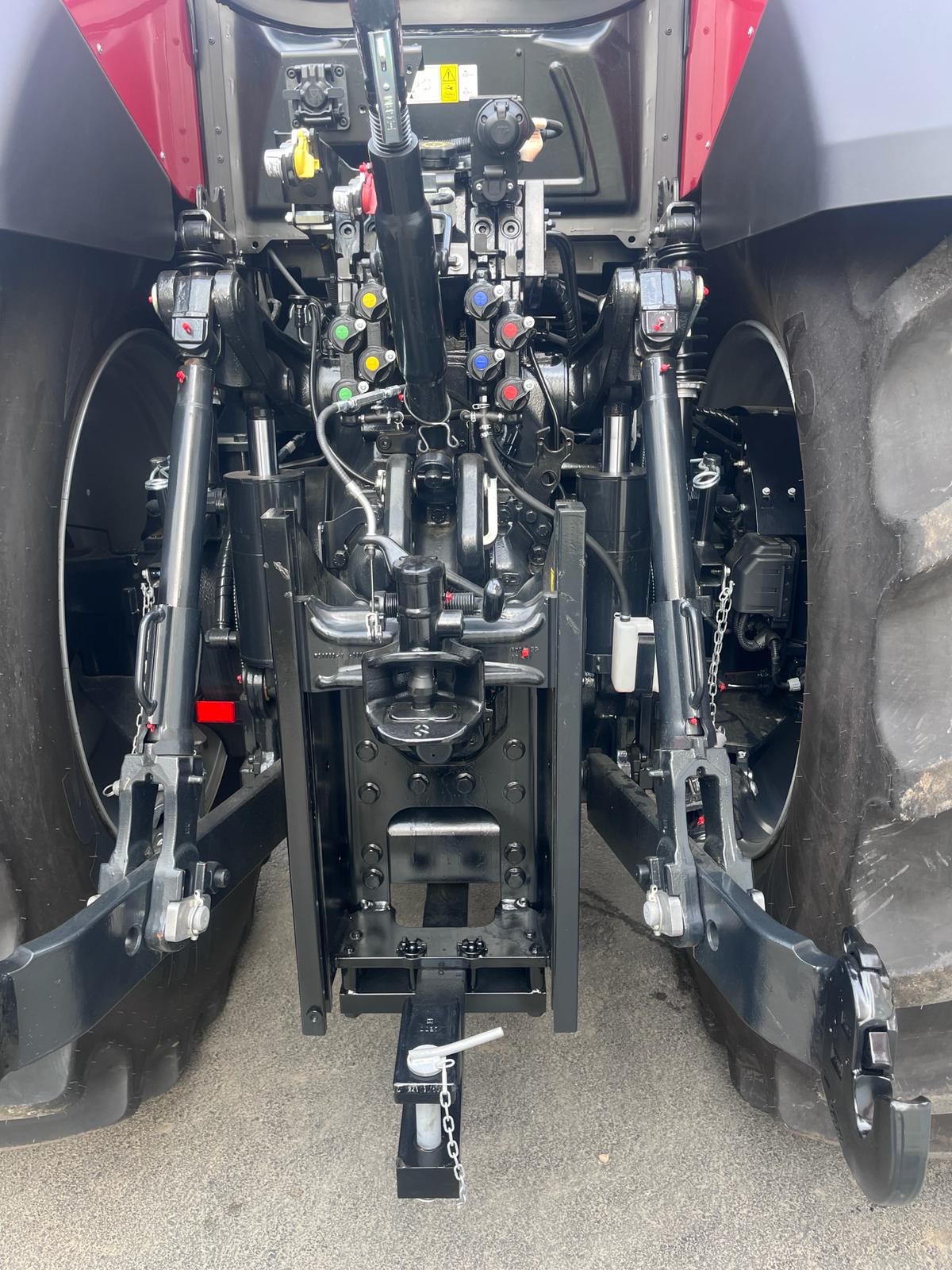 Elektronická regulace zadního tříbodového závěsu (EDC) včetně regulace prokluzu kol (radar), tříbodový rychlozávěs Kat. 3, auto stabilizátory závěsu, axiální Load Sensing čerpadlo s výkonem 165 l/min, max. zvedací kapacita závěsu 11.058 kg – zvedací písty o průměru 120 mm, 4 elektronicky ovládané okruhy hydrauliky p rostřednictvím loketní opěrky Multicontroller, nastavení průtoku a časování hydraulických okruhů, max. průtok okruhem až 140 l/min, ovládání zadního TBZ a jednoho okruhu na zadních blatnících.