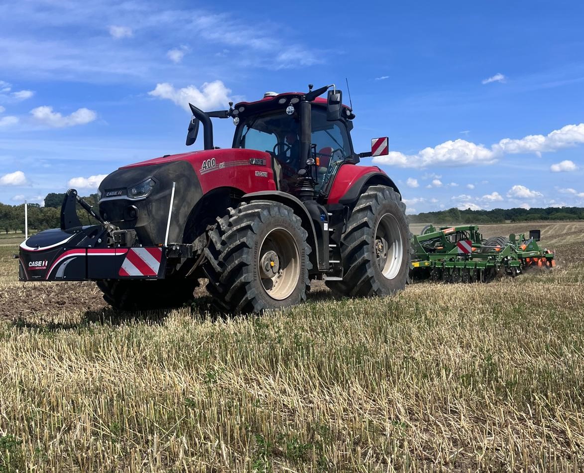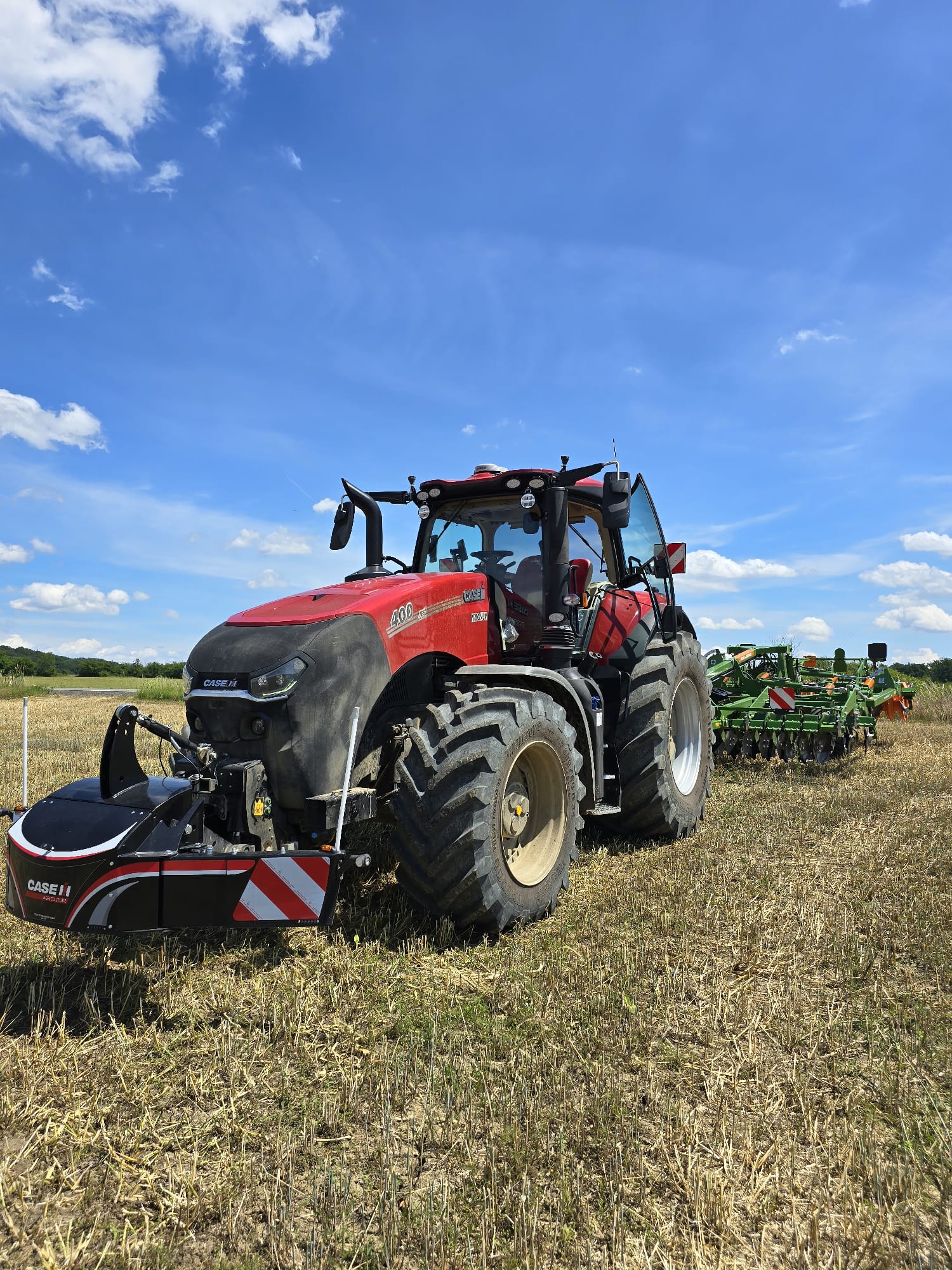 Vzduchové brzdy dvoukruhové, etážový závěs přívěsu s automatickou hubicí 38 mm, tažná lišta, držák předního závaží + čelní závaží 18x55 kg = celkem 1226 kg, závaží zadních kol 2x450 kg + 2x225 kg = celkem 1364 kg, schránka na nářadí, rozšíření zadních blatníků. AFS: Satelitní řízení AccuGuide, level 3 – High, odemčená na RTK s přesností 2,5 cm (přijímač Vector Pro,GPS, Glonass, Galileo) se záložním systémem v případě ztráty signálu, ISO BUS kat. 2 + zásuvka 11783 pro ovládání pracovních strojů. AFS Connect Advanced telematika předplacená na 3 roky s přenosem souborů (4G PCM modem, sledování, vzdálený servisní přístup do stroje a CAN BUS, zrcadlení monitoru).