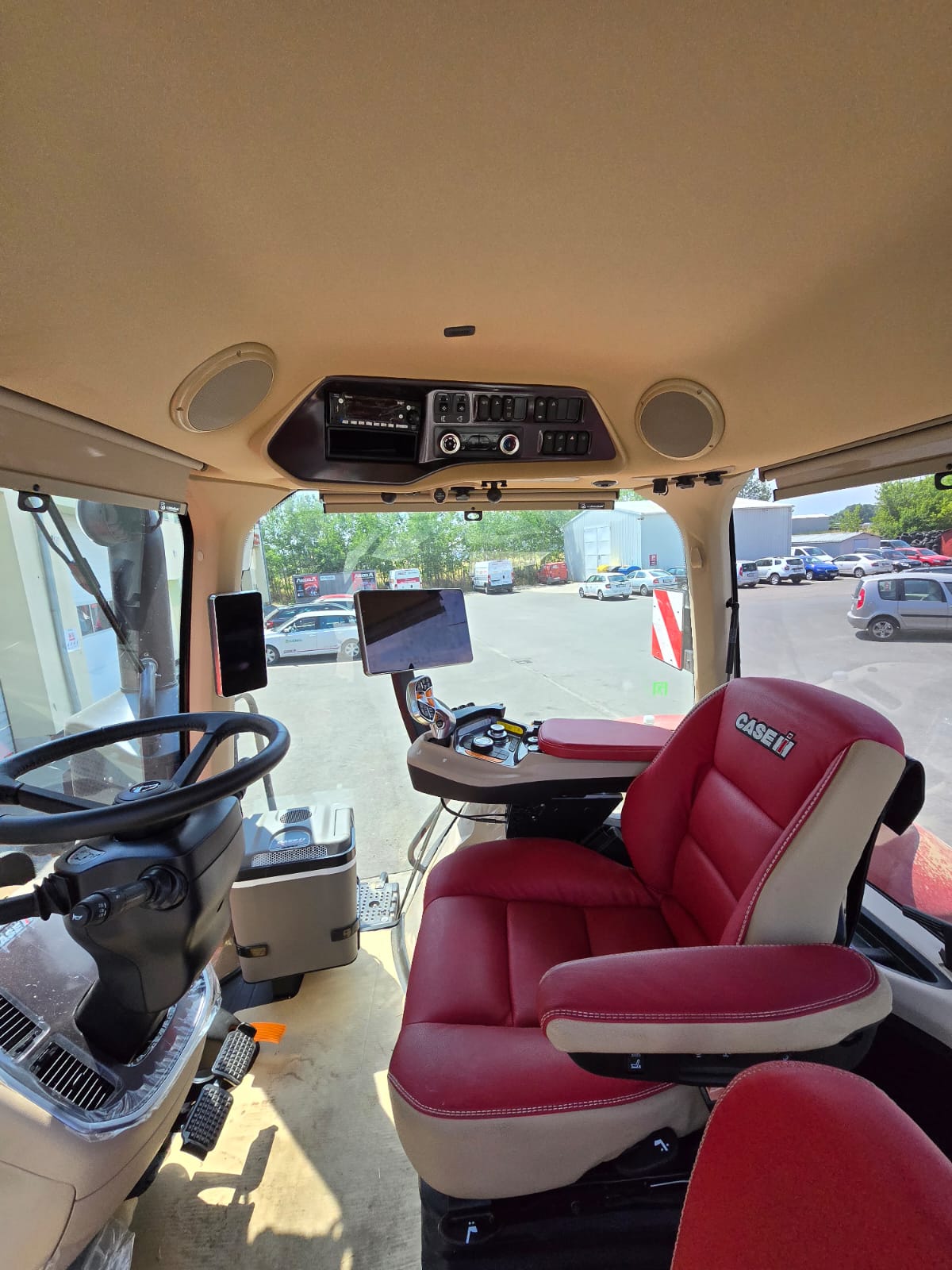 Zcela nová čtyř sloupková kabina Surveyor s plochou prosklení 6,3m2. DELUXE PERFORMANCE TECHNOLOGYTM paket: mechanické odpružení kabiny s nastavením tuhosti pružení, protihlukové laminované čelní okno, tónovaná skla, zadní okno zatmavené, automatická klimatizace, komfortní sedadlo řidiče Active seat s aktivním pružením, vyhříváním a možností natočení o 40°, sedadlo spolujezdce, Deluxe sound systém + Performance rádio s CD, USB, BT hadsfree, sluneční clony pro přední, pravé a zadní okno, stěrač s ostřikovačem pro přední a zadní okno, stěrač pro pravé okno, elektricky ovládaná a vyhřívaná dvojitá zrcátka, manuální výsuv, lišta pro umístění monitorů v horní části kabiny se dvěma koulemi, několik el. zásuvek různých typů pro napájení monitorů, 4x USB 5V zásuvka, el. zásuvka 230V A/C (150W), integrovaná přední a zadní kamera + porty pro další 2, 20 LED pracovních světel (6x v přední masce, 2x na přením sloupku kabiny, 4x v přední části kabiny + 4x v zadní části kabiny 1400 lm, 2x na bocích kabiny 2500 lm, 2x na zadních blatnících 5000 lm), LED potkávací a dálková světla, prémiové LED pásky ve sdružených světlometech, 2x paměť pro pracovní světla, funkce Follow me Home (rosvícení světel při příchodu a odchodu), 2x LED maják na levé a pravé straně. Nová ovládací loketní opěrka Multicontroller s multifukční pákou, sdružený ovladač Encoder s rychlým menu, barevný dotykový monitor AFS 1200 PRO, operační systém Vision pro nastavení všech funkcí traktoru, barevný provozní monitor na A sloupku, konfigurovatelná ISO tlačítka.